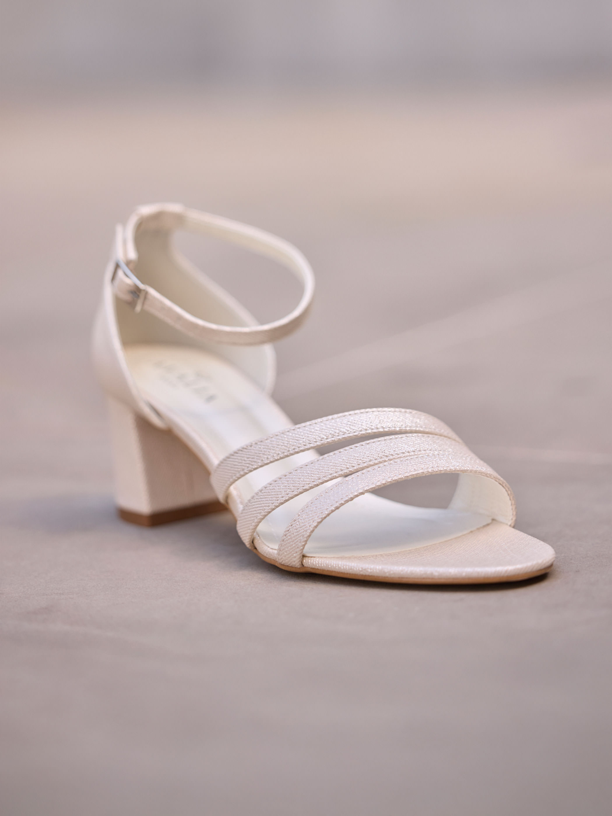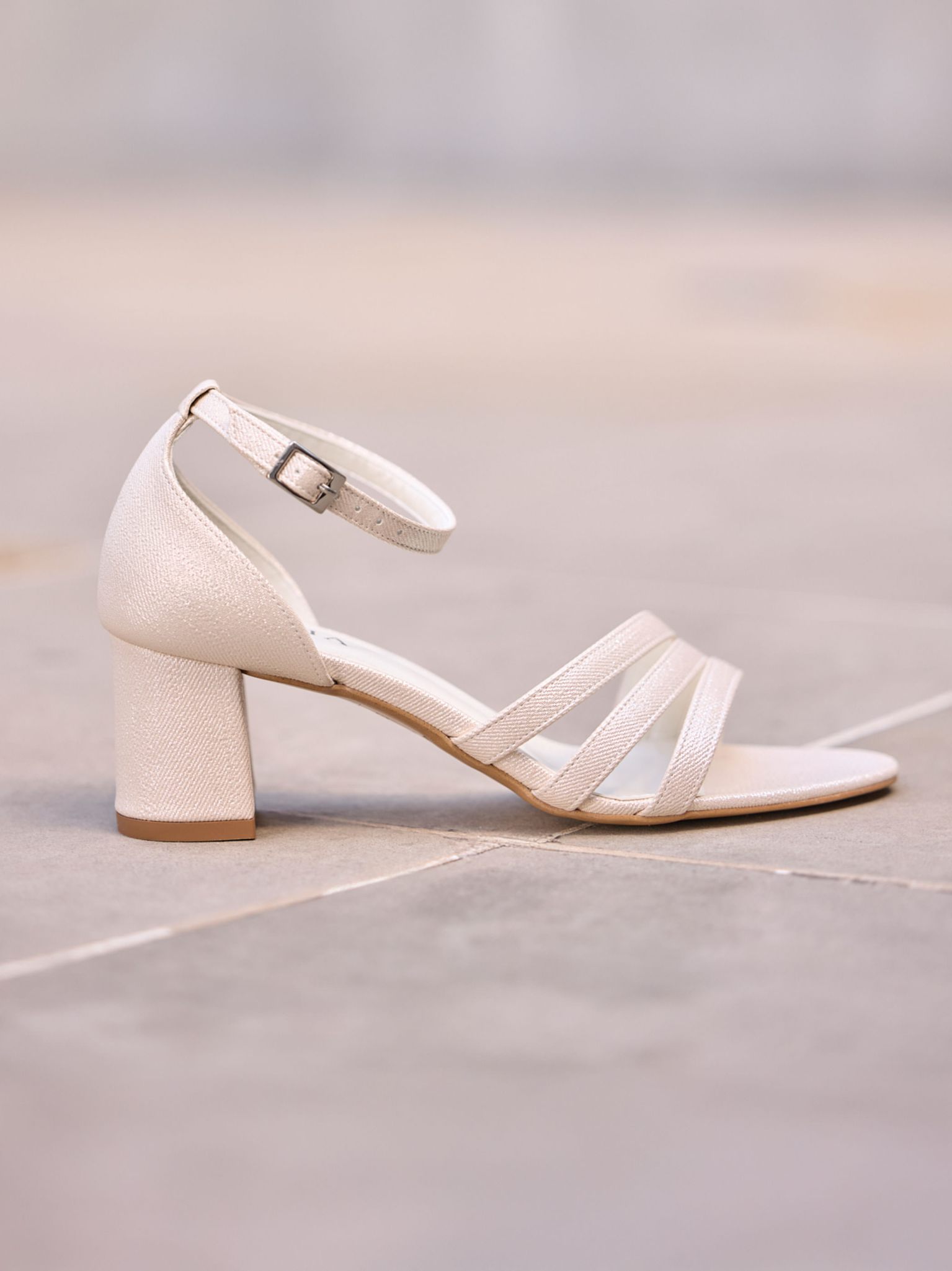 Die Brautsandale EDDY kombiniert elegantes Design mit hohem Tragekomfort. Gefertigt aus synthetischem Material und ausgestattet mit einer weichen Schaumstoff-Innensohle bietet sie sicheren Halt durch verstellbare Riemen. Der 6 cm breite Absatz sorgt für eine harmonische Silhouette – ideal für Bräute, die Komfort und Stil perfekt vereinen möchten.