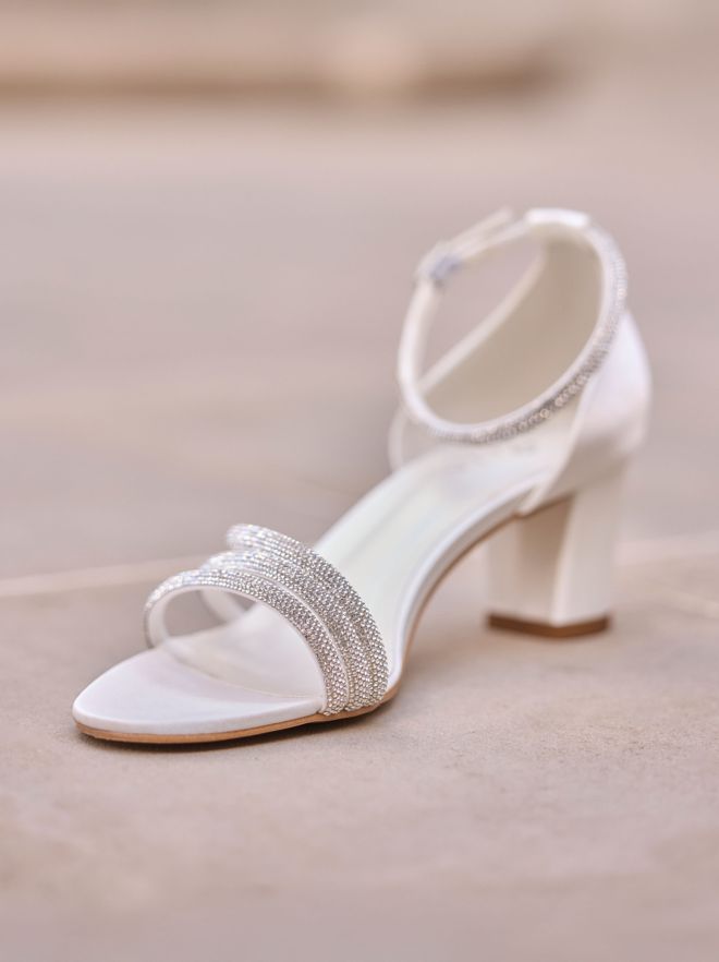 Modern, klar, selbstbewusst: Diese Braut-Sandale aus edlem Satin vereint Höhe und Komfort in perfekter Balance. Der 10,5 cm Absatz sorgt für eine elegante Silhouette, während die weiche Schaumstoff-Innensohle den ganzen Tag über für angenehmes Tragegefühl sorgt. Breite, verstellbare Schnallenriemen bieten sicheren Halt – ideal für Braut, Empfang oder den stilvollen Auftritt am Abend.